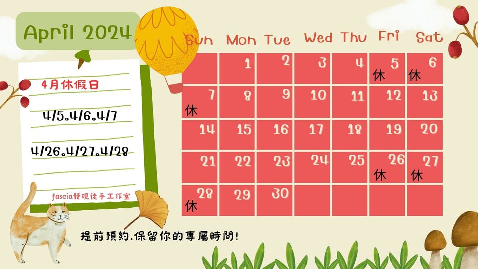 2024年4月公休公告 | 彰化徒手按摩,彰化傳統整復推拿